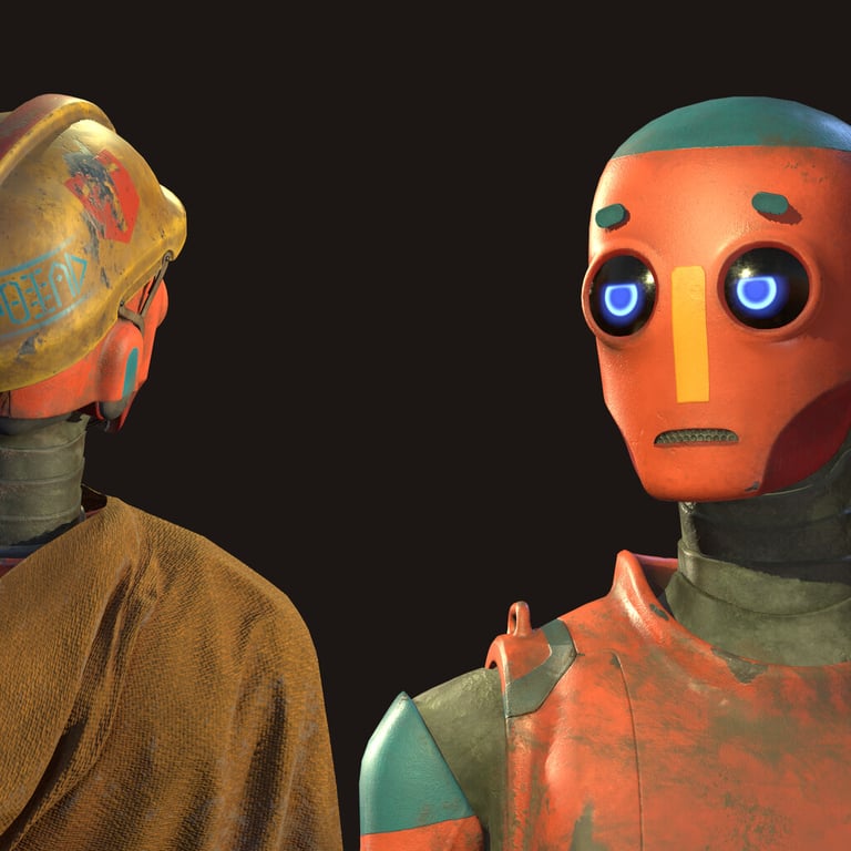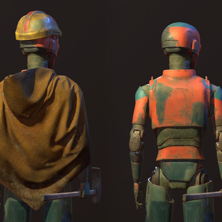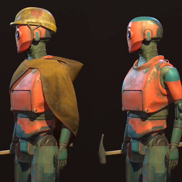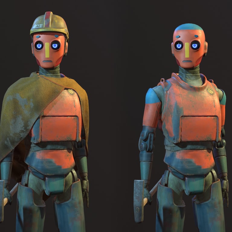 This hard-surface study showcases an original character design influenced by classic automatons, with inspiration drawn from Stray and The Iron Giant.
