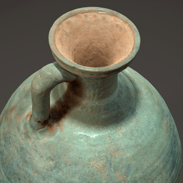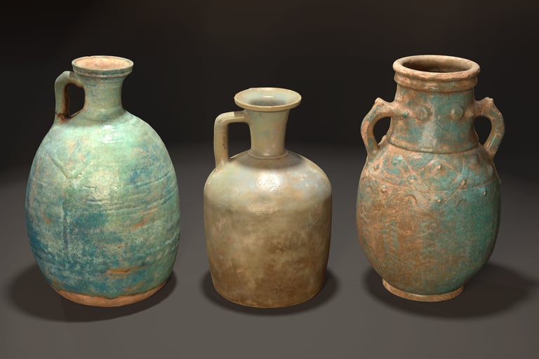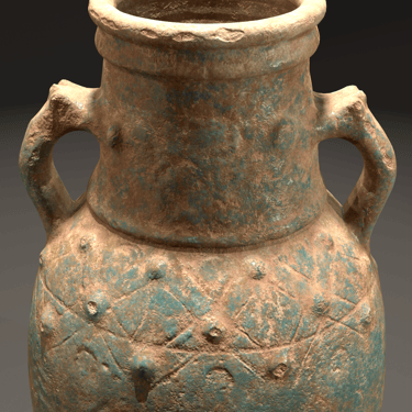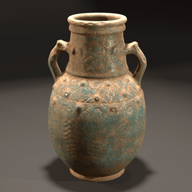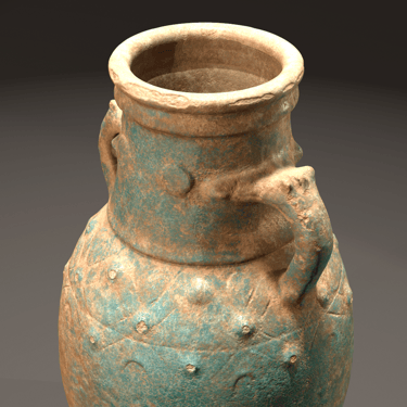 This study examines a Parthian turquoise-glazed terracotta vessel dating from the 1st to 3rd century. The piece reflects the distinctive ceramic techniques and artistic influences of the Parthian era, showcasing the vibrant glazing methods and craftsmanship of the time