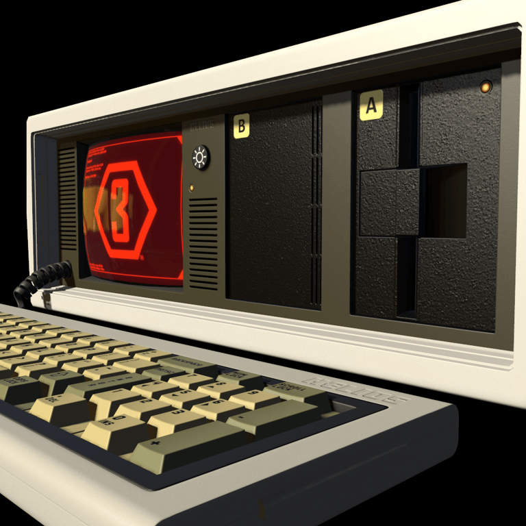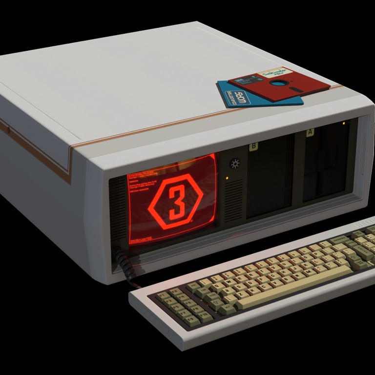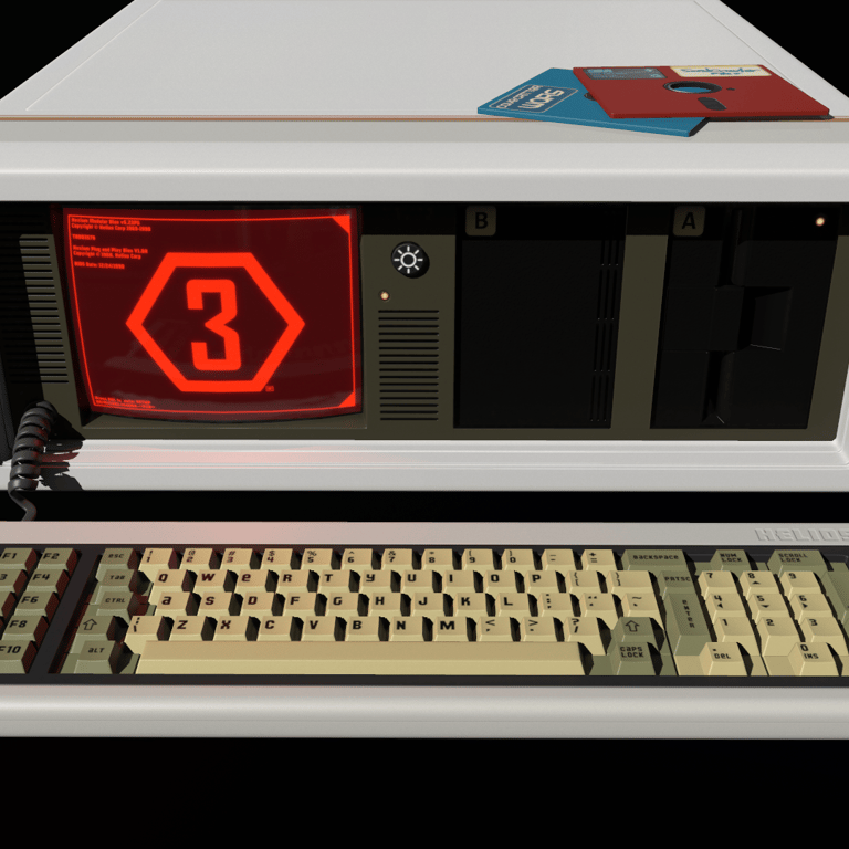 A design loosely based on the IBM Compaq Portable, capturing its distinctive form and vintage computing aesthetic.