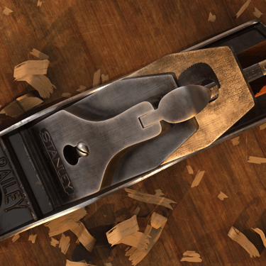 This model is based on a Stanley Bailey No. 4 hand plane from my workshop. Careful attention was given to accuracy, preserving realistic details such as wear and tear. The design reflects the distinct character of vintage hand planes, emphasizing the craftsmanship of their cast iron components and hardware.